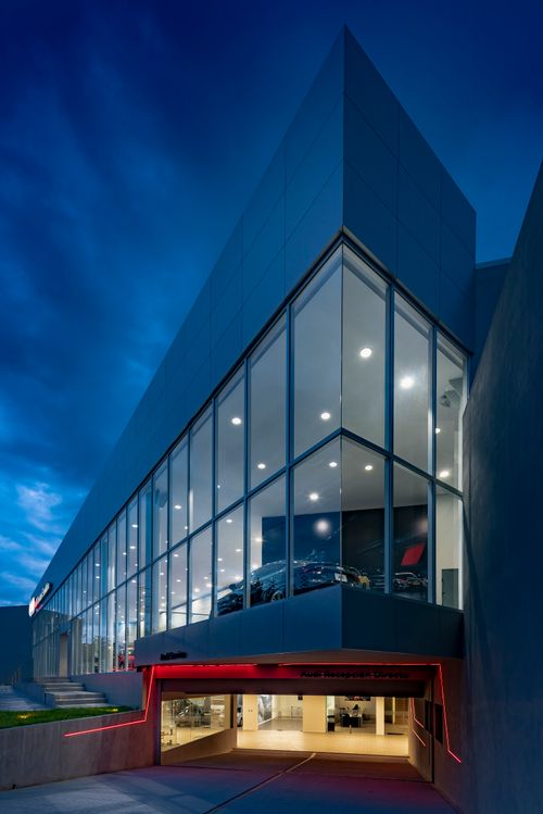 El proyecto se organiza en tres niveles clave para cumplir con sus funciones operativas. En el nivel sótano, se incluyen áreas como taller, oficina, bodega, sanitarios con regaderas, comedor, capacitación y ventas, con acabados en pintura epóxica y cerámica, y divisiones de cristal templado claro. En la planta baja, se destacan los espacios de oficinas, showroom y ventas, con pisos de cerámica o porcelanato y fachadas de cristal templado, además de un estacionamiento de 13 cajones. En la azotea, se encuentra un área de inventario con 81 cajones y un montacargas para la transferencia de unidades entre niveles.